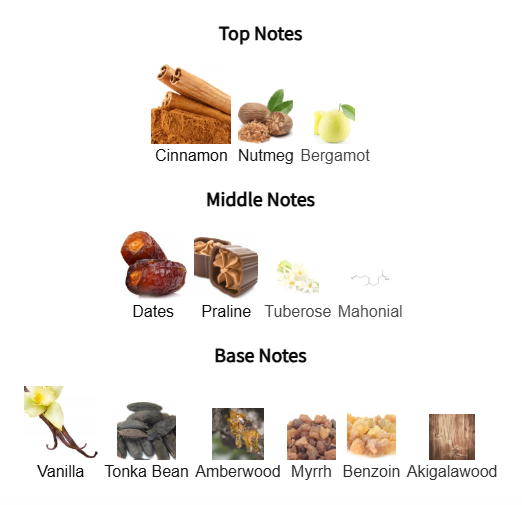 Khamrah by Lattafa Perfumes is a Oriental Spicy fragrance for women and men. This is a new fragrance. Khamrah was launched in 2022. Top notes are Cinnamon, Nutmeg and Bergamot; middle notes are Dates, Praline, Tuberose and Mahonial; base notes are Vanilla, Tonka Bean, Amberwood, Myrrh, Benzoin and Akigalawood.